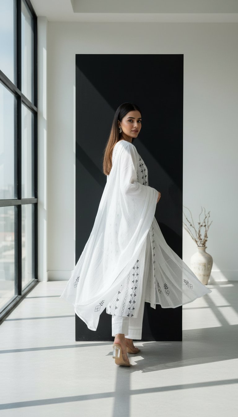 A timeless expression of elegance, this handwork embroidered suit is designed for women who appreciate refined craftsmanship. The intricate hand embroidery enhances the front with delicate detailing, creating depth and texture that reflects traditional artistry. Paired with a flowy georgette dupatta, the ensemble exudes grace and sophistication. The lightweight drape of georgette adds movement and softness, making it perfect for festive gatherings, formal dinners, and celebratory occasions. A luxurious addition to your Pakistani eastern wardrobe, crafted for statement elegance.