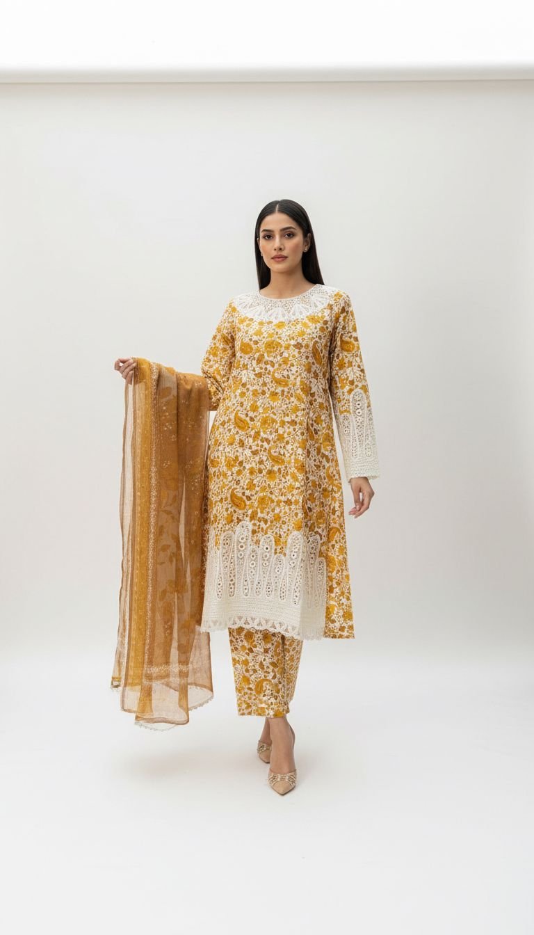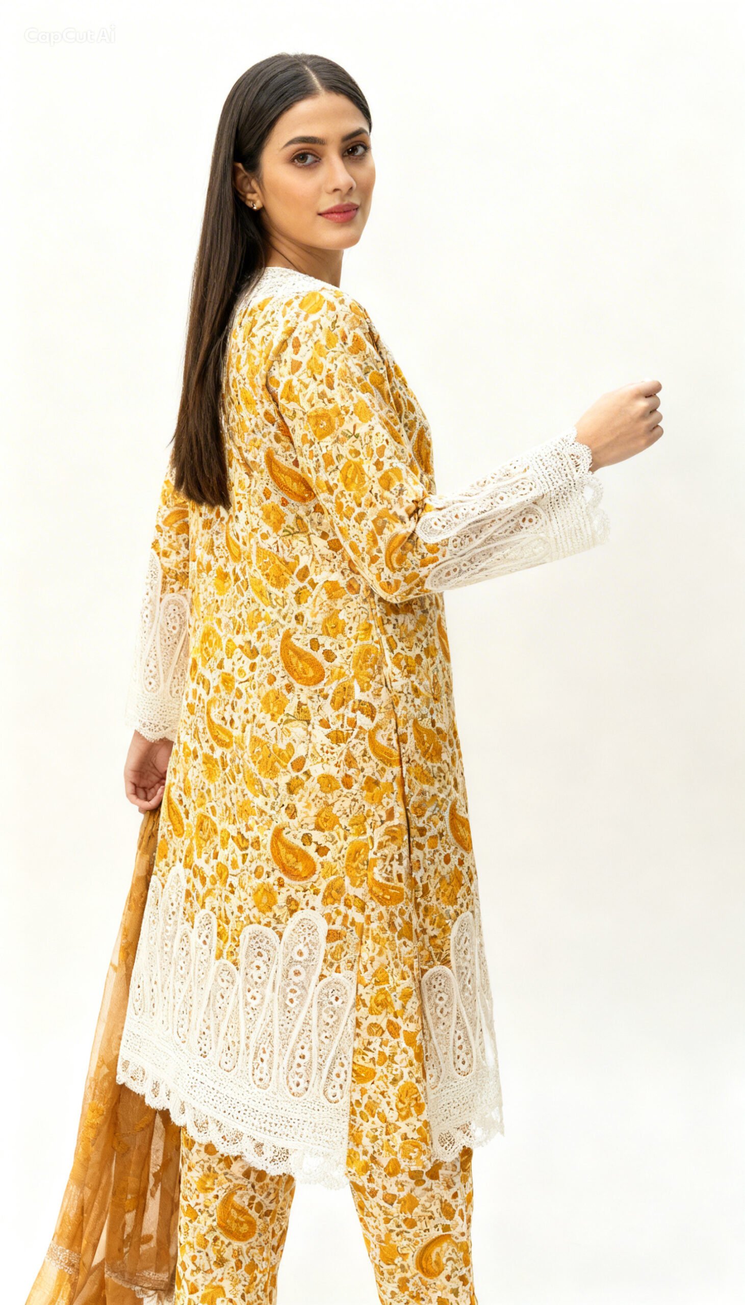 Stylish patches bring a contemporary twist to traditional wear, making it a versatile choice for casual and semi-formal occasions.