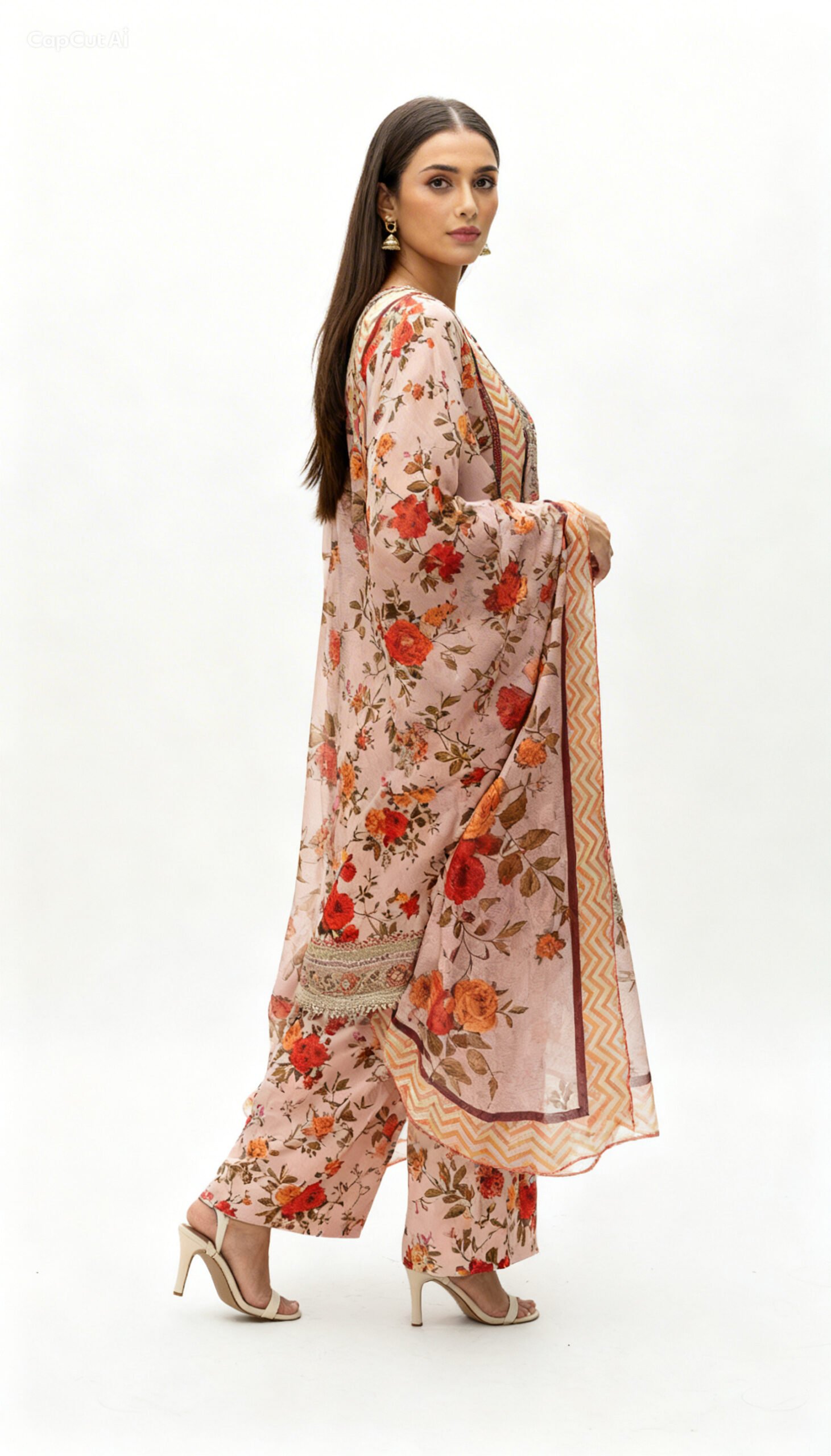 Delicate embroidery adds charm and grace, making this suit perfect for casual meetups or festive daytime events.