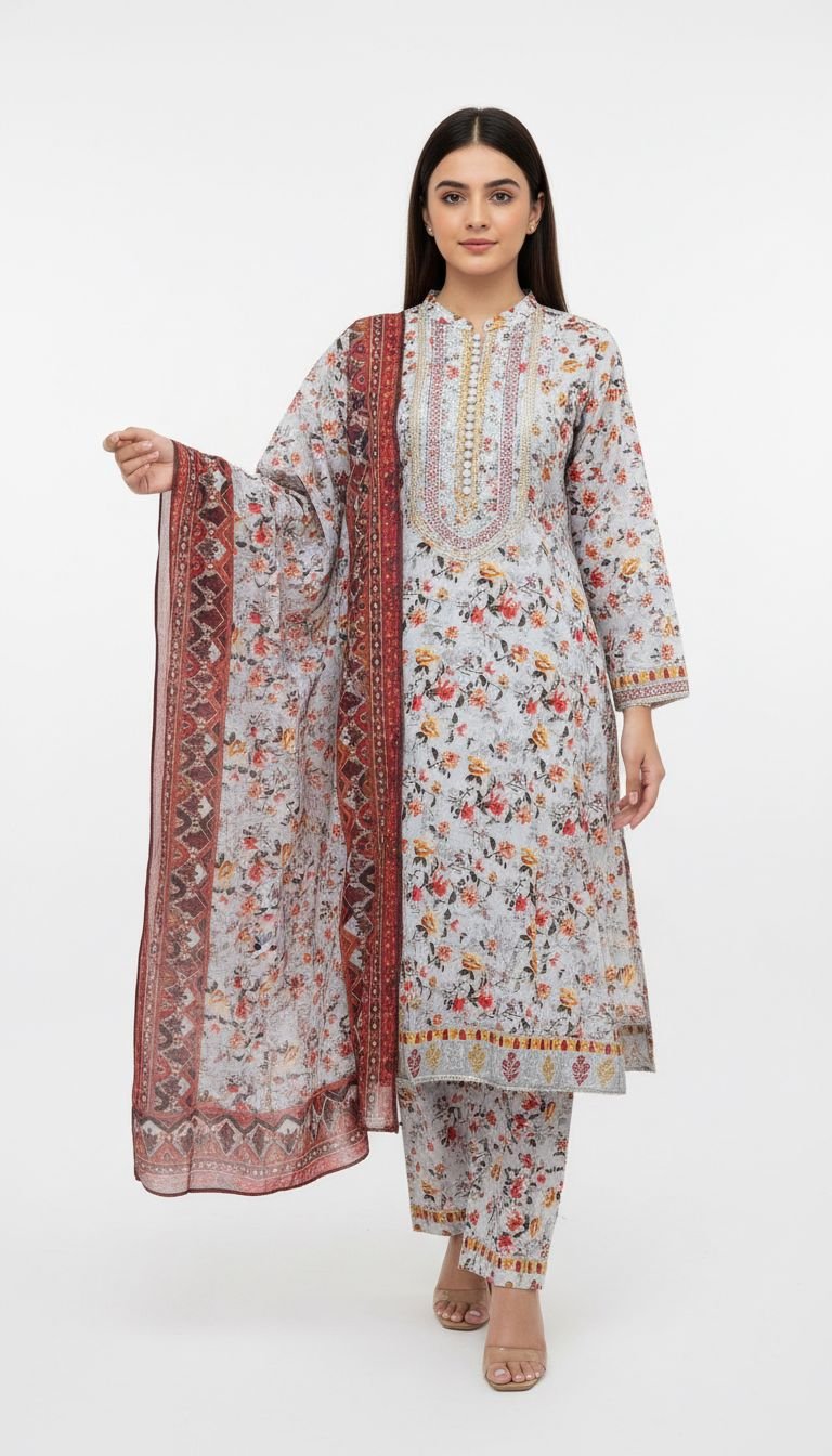 This eastern suit features delicate embroidery that enhances its graceful structure. Designed for teens who prefer an elegant, well-put-together look during special gatherings.